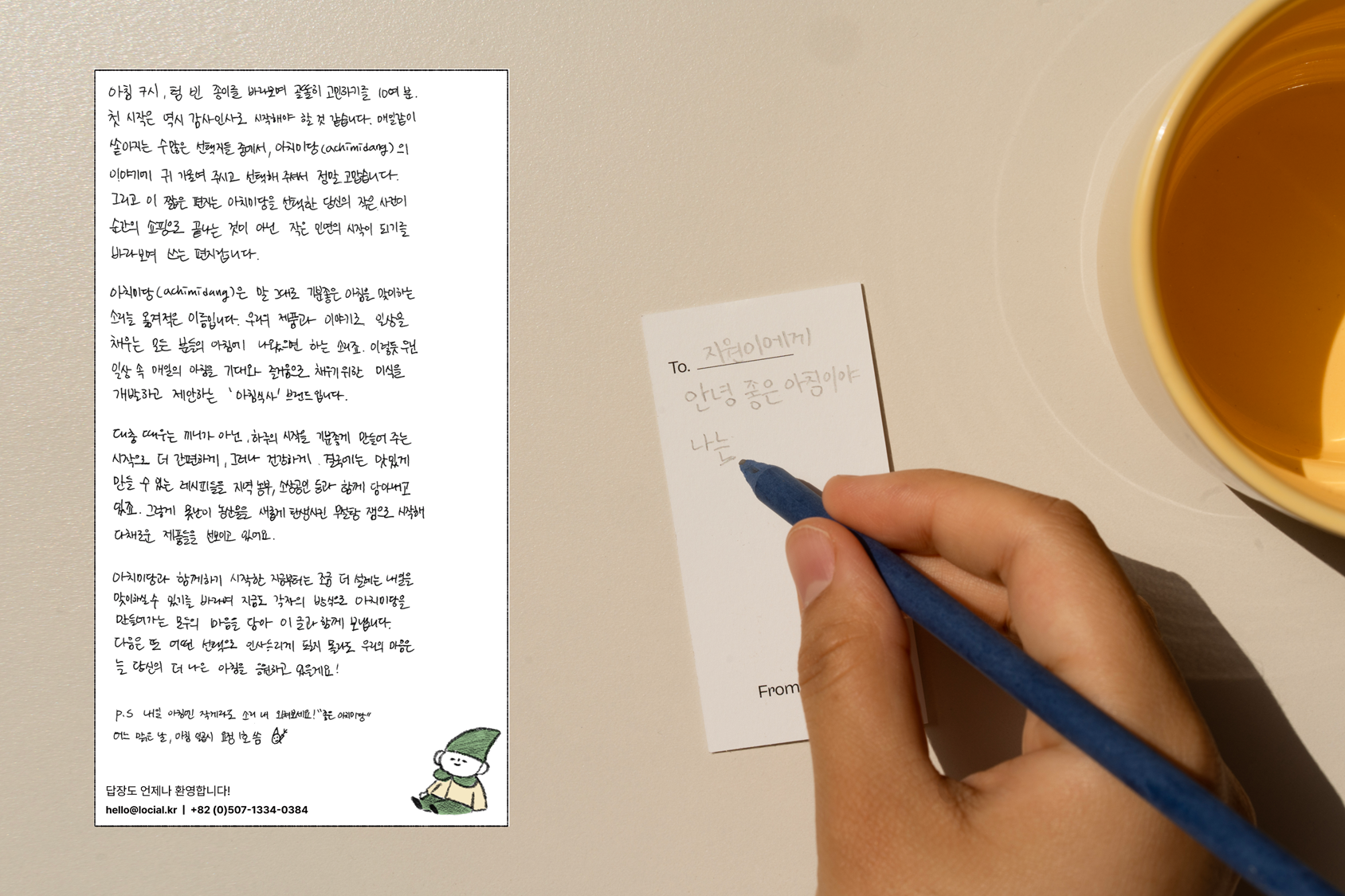 예를 들면, 그런 아침의 감성을 담은 오프라인 공간이나 굿즈, 그리고 사람들이 연결될 수 있는 커뮤니티까지요. ‘기분 좋은 아침’이 단지 한 끼의 식탁이 아니라, 하루의 문화를 만드는 경험이 되길 바라고 있습니다.
