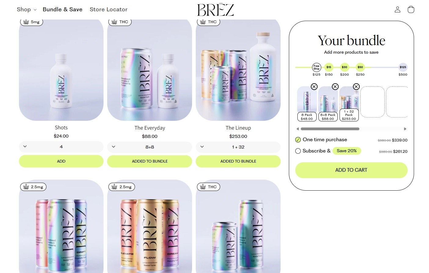 자사몰에 있는 '묶음 구매' 탭 역시 테스트 결과 찾아낸 지금의 답입니다. 해당 탭에 들어가면 내가 원하는 라인업의 브리즈 음료를 종류별로 골라 나만의 묶음을 만들 수 있습니다. 오른쪽에서는 내가 지금의 묶음을 구매했을 때 받을 수 있는 할인 금액을 실시간으로 확인할 수 있죠.