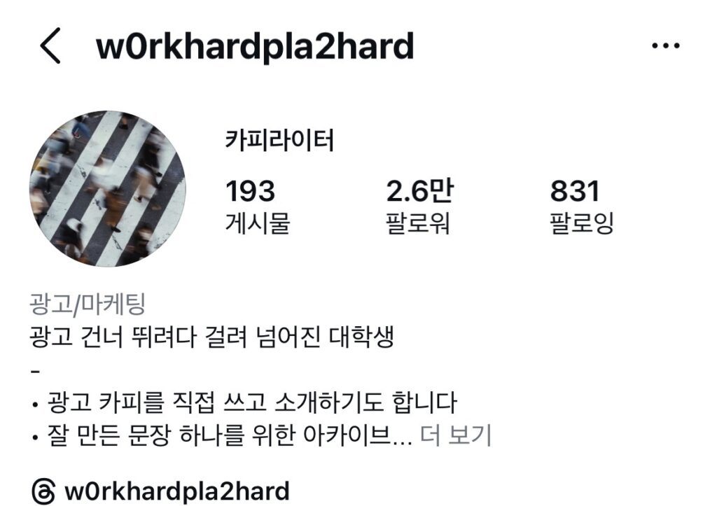 ✍🏻카피라이터 (@w0rkhardpla2hard)